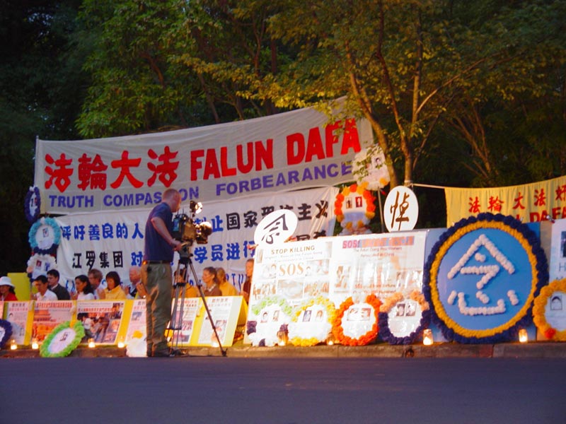 图片:奥地利法轮功学员中使馆前烛光悼念被迫害致死的同修