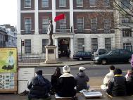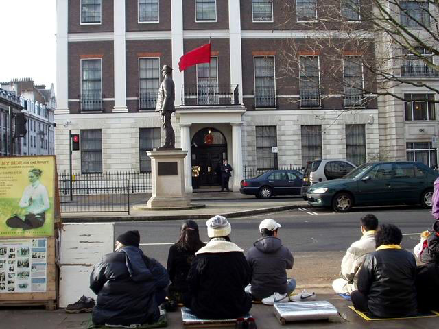 【明慧网2003年1月15日】自1月12日开始,英国大法弟子分别在伦敦中国大使馆、曼彻斯特领事馆前进行3天的和平请愿。13日在伦敦、曼城两地又分别举行了新闻发布会,揭露江氏政治流氓集团对法轮功的野蛮