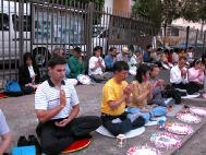 【明慧网2003年1月15日】悉尼法轮大法学员自2003年一月十二日(星期日)上午8时开始,至一月十四日,与世界各地大法学员同步,连续三天在中领馆前静坐抗议,发正念,举行新闻发布会,及烛光守夜活动,谴责江泽民流氓集团残酷