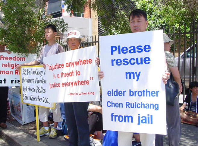 悉尼大法学员中领馆前揭露江氏残暴 要求停止虐杀(图)