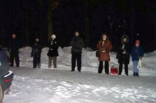 【明慧网2003年1月15日】2003年1月13日晚,俄罗斯学员在中使馆前发正念,呼吁制止江泽民集团对法轮功学员的虐杀。