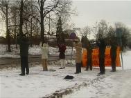 - 图片:瑞典斯德哥尔摩学员在风雪中呼吁制止江氏集团的残酷迫害