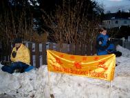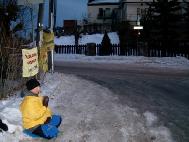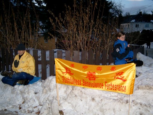 图片报道:1月13-14日挪威大法弟子在中国大使馆前敦促中国停止迫害法轮功