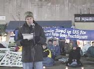 两天的严寒,学员们默默的呼吁感动了很多善良的人,很多美国人和华人专门停下来看展板。一位法轮功学员的不修炼的丈夫走过来同学员们一道在寒风中举着横幅。正如一位西人学员说:“只要迫害还在继续,无论寒暑我们都会站出来。”