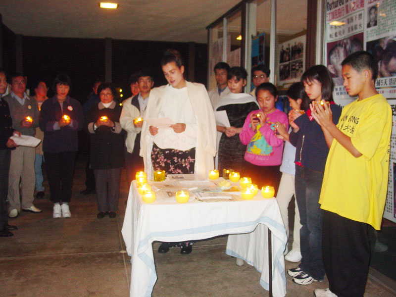 7.20三周年法轮功学员在堪培拉中馆前烛光守夜(图)