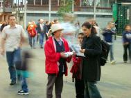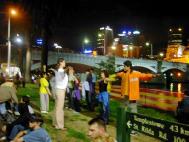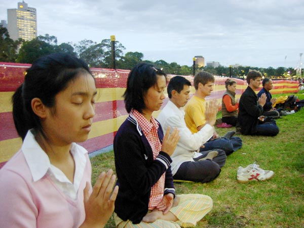 从下午六点开始一直到焰火燃放的午夜,无数过往群众观看了功法表演、接受了真相资料,许多人当场学功。一个十几岁的小姑娘刚刚学会,便自告奋勇地开始当起了“小教员”,替学员纠正其他人的动作。她说学炼功法让她感到浑身温暖,异常舒服美妙。