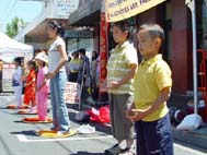 在人山人海的摊位前,墨尔本大法弟子们送出了大量的资料和光盘,有些经过的中国人惊奇地指着我们的摊位说:“快看,法轮功啊!”,也有很多中国人主动前来索取资料。明慧学校小弟子们的功法演示特别引起小观众的兴趣。当地的媒体也前来采访了大法弟子。