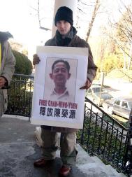 大纪元华府日报记者报导--1月24日星期五,华府法轮功学员在缅甸使馆前,要求缅甸政府释放香港法轮功学员陈荣源,自由缅甸联盟成员前来声援。缅甸使馆拒绝开门接受法轮功学员准备递交的呼吁信件。