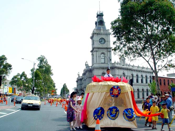 【明慧网2003年1月27日】1月26日是澳大利亚的国庆节“澳洲日”,墨尔本法轮功学员与数万市民一起参加了各区举行的庆祝活动,将大法的美好展现给了市民。在大丹顶农市,法轮功学员作为该市的第一个以华人为主的群众团体参加市政府主办的游行活动,令当地华人居民雀跃不已,纷纷表示法轮功学员强大的阵容给我们华人团体争光。