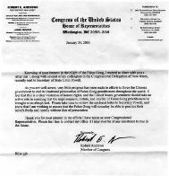 新泽西国会议员罗伯特-安德鲁斯给法轮功学员的回信