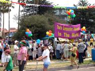 【明慧网2003年1月31日】元月26日卧龙岗的法轮大法学员被邀请参加当地的澳洲国庆日的庆典活动,这是连续三年被澳洲国庆日委员会邀请与其它社团一起参加庆典。庆典在卧龙岗海边的Belmore Basin举行,这是沿海岸线最著名的旅游景点之一。