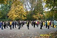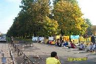 在这期间开来一辆大轿车,停在使馆门口。从车上下来约40中国客人,他们非常惊奇的围上来观看,同学员交谈,并主动地索取真相资料。在中使馆的大门口,在使馆楼上楼下多部摄像机面前,这些可贵的中国人急不可待的自己索取资料,使学员深受感动。这是在另外空间清除了操控世人的邪恶之后,人们开始觉醒的真实反映。同时也鼓舞了学员们更有信心抓紧时间快讲,救度更多的世人。