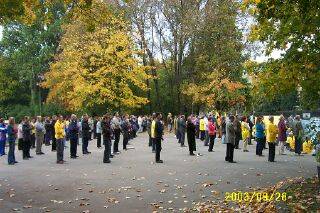 28日上午250多名大法学员在莫斯科中使馆前集会抗议,学员们打着中、俄文标语和真相展板:‘法轮大法好!’‘要求立即停止迫害法轮功和大法学员!’,‘支持全球公审邪恶之首江××!’‘善恶有报,唤起你的良知’;学员们拿着被迫害致死的学员的照片;有序地站在中使馆对面的广场上发正念,平和的炼功;有的学员向路人发放真相资料,讲真相。整个活动充满慈悲祥和之场。