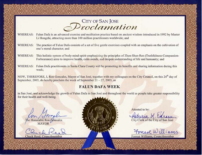 鉴于,圣塔克拉拉县的法轮大法学员将会在本周向公众介绍法轮大法的益处并传播有关法轮大法的信息;