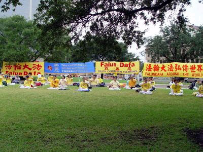【明慧网2003年10月13日】本周末,来自各地的大法弟子聚集在休斯顿市中心的Old Market公园,拉开了为期三天的“庆祝李洪志先生在休斯顿讲法7周年”系列活动的序幕,呼吁社会各界关注法轮功在中国遭受的迫害
