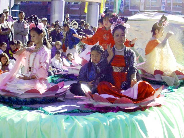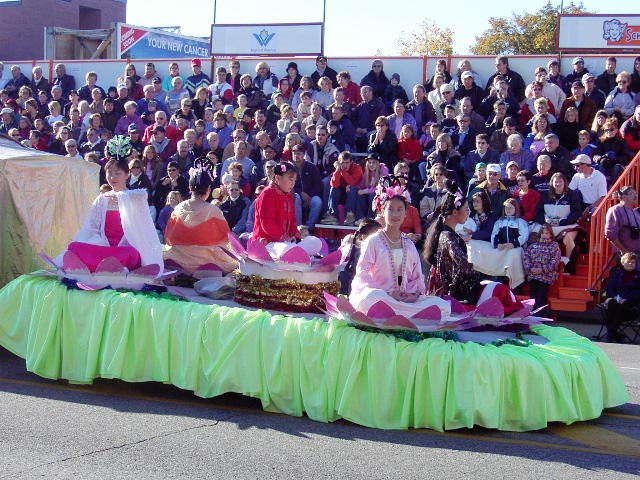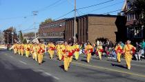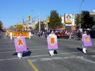 【明慧网2003年10月15日】10月13日,加拿大规模最大的感恩节游行在凯基纳(Kitchener)、滑铁卢市(Waterloo)举行。这项活动也被列为北美一百大活动之一,今年已是第三十五届,每年吸引大约30万人参加。今年约一百三十个团体参加了游行。法轮功学员怀着向更多的居民们洪扬大法和介绍中国传统文化的美好意愿加入了游行。他们的队伍由腰鼓队、莲花花车、台湾高山族队、藏族舞队、扇子舞队等组成。观众中的华人同胞赞叹道:“法轮功的队伍真有气势!”加拿大电视台(CTV)做了现场转播报道,其中还介绍了法轮功。