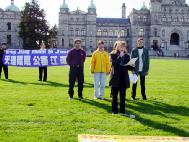 【明慧网2003年10月15日】10月10日,由加拿大法轮功学员发起的「为正义横跨加拿大汽车之旅」启程仪式,在加拿大卑斯省府维多利亚市省议会大楼前举行。