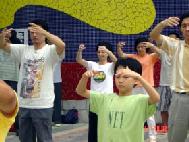 第二阶段:教唱学员创作之大法歌曲,大家正兴致勃勃,突然下了一阵大雨,很快的雨停了,继续我们的活动。优美的法轮功学员创作的歌曲音乐,深深地打动了民众们的心;最后在“法轮大法好”歌声中结束此次的活动。