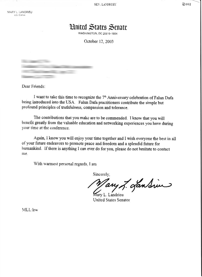 我谨借此机会表彰法轮大法传入美国七周年的庆祝活动。法轮大法学员为我们提供了简洁深奥的“真、善、忍”原理。