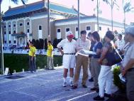 ◇书店里的故事。1998年,圣安东尼奥市的一家书店老板欣然答应把大法书籍放到书店,并希望学员在那里试举办洪法班,结果洪法班一直办到现在,经历了很多平凡感人的故事。在营救国内亲人的活动中,学员们到本地一位国会议员的办公室拜访,没想到议员的助理对大法产生了浓厚的兴趣。几个星期后她开始出现在书店里学功学法,并成为固定的一员。一位乐师因从小受虐待,精神非常压抑,他刚来书店时,和学员交谈中经常痛苦得流泪,自从他炼功学法后,人变得乐观开朗,他发自内心地感激大法,默默地向书店捐款,感谢书店免费提供场地。书店洪法班在联系媒体中起到了巨大的作用。通过到书店采访,当地ABC电视台在黄金时间把国内邪恶的镇压和迫害作为头条主要的新闻播出;圣安东尼奥快报发表了正义的报导;有线电视播出了关于大法的节目,该制作人还寄来节目录像带。我们给她写了感谢信和寄给她录像带的钱。不久我们又意外地收到了她的退款和信,信中她说她做了这么多节目,寄了这么多录像带,这是第一次收到钱和感谢信。她说,那么这点钱就作为她的一点心意来支持中国受迫害的法轮功学员吧。