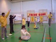 在台湾中央大学社团联展表演法轮功功法(图)