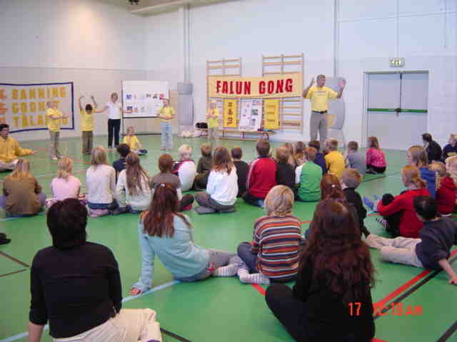 【明慧网2003年10月19日】10月17日,瑞典部分大法弟子应邀来到林雪坪市,为一所九年制学校的师生介绍大法和大法在中国受