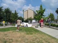 9月5日下午,我们来到拉哥兰吉市(LAGRANGE)。刚刚在市政厅的停车场停下,随后一部车里走来一位西装革履的男士。他对我们说:他是拉哥兰吉市公共服务部的经理,他发现我们的车的左前轮胎坏了,并告诉我们如何去这里的修车店。随后他看了看有一个大口子的轮胎,他说:轮胎根本支撑不了到下一个路口,还是我来帮你们换吧。