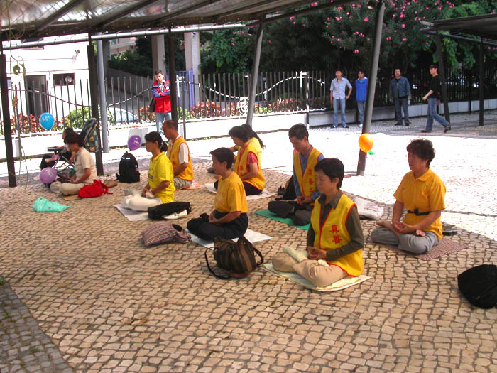 。上午10点30分至11点45分学员们在议事厅前地新闻局前派发真象资料,市民、游客纷纷接看,两千份真象资料很快派发完毕。中午1点20分至2点20分学员们聚集在中联办前面的小花园里学法炼功,发正念。接着又到葡京赌场前面向大陆游客派单讲真象洪法直至6点发完正念离去。晚上8点至10点继续日常的学法、发正念活动。