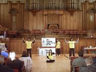 【明慧网2003年10月21日】10月18日,苏格兰大法弟子应爱尔市国际特赦之邀,参加了在爱尔市政厅(Town Hall)举办的人权集会。由于去年我们就应邀参加,这次我们刚一到场,就有人跟我们打招呼,并告诉我们,去年集会时我们好几张穿着大法衫炼功的照片登在了当地报纸上。
