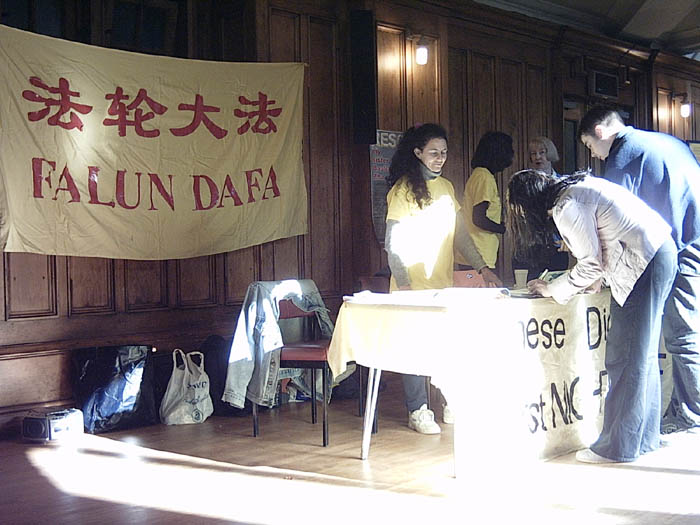 回到市政厅,人权集会继续进行。我们的功法表演被安排在最后一个上场。表演一结束,人们便走到我们展位来签字。有人拿走了一叠传单,说要帮我们去发。一位负责爱尔国际特赦网站的成员向我们要炼功的照片,说要放到他们的网站上。爱尔国际特赦组织的负责人向我们表示感谢,并希望我们能向他们提供更多的关于法轮功的近况。