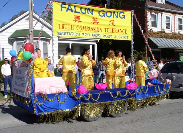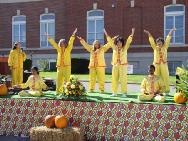 法轮功学员应邀参加了堪萨斯城American Royal游行,人们被花车上的弟子们的功法演示深深地吸引住了,赞不绝口并争相接过学员们散发的资料。学员向一位中国观众简短地介绍了大法在世界的洪传,以及江ࡩࡩ的罪恶,她不住地点头,并愉快地接过了资料。当地一家电视台实况转播了游行庆祝活动。