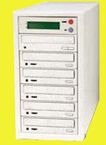 光盘拷贝机是一种专门用来复制大量光盘的设备。简单地说,就是把N个刻录机堆叠在一起,一次刻N张光盘的设备。光盘拷贝机有很多种,基本上有联机型和脱机型(可完全脱离电脑,插上电源即用)两大类。通常在卖刻录光盘、刻录机处有售,不懂电脑的人也会在短时间内学会操作,有一拖一的,即一个光驱一个刻录机,这样的为原装机型的比较多见,如同两个光驱上下落在一起大小,刻盘时是(光驱)盘对(刻录)盘进行刻录,售价在一、二千元左右。一拖二、拖三以上的光盘拷贝机通常为组装的比较多,如同组装一个电脑主机箱一样。通常由一个光盘拷贝机的主机箱、控制器、硬盘(与电脑的硬盘一样)、光驱、多个刻录机、电源、风扇、数据连线等部件组成,价钱在二、三千到四、五千元或更多。一台一拖五的拷贝机如一个小型的电脑主机箱大小,平均一小时可刻出50张子盘。(如图)