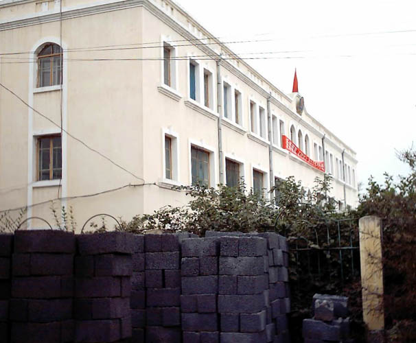 | 从正门外看到的白色办公楼 | 院内右侧是办公区 |
