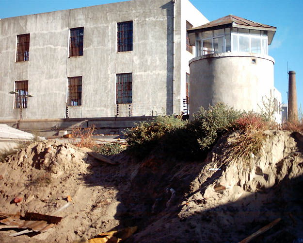 图中监狱围墙水泥尚未完全晾干,晾干的呈浅色,未干的呈深色。