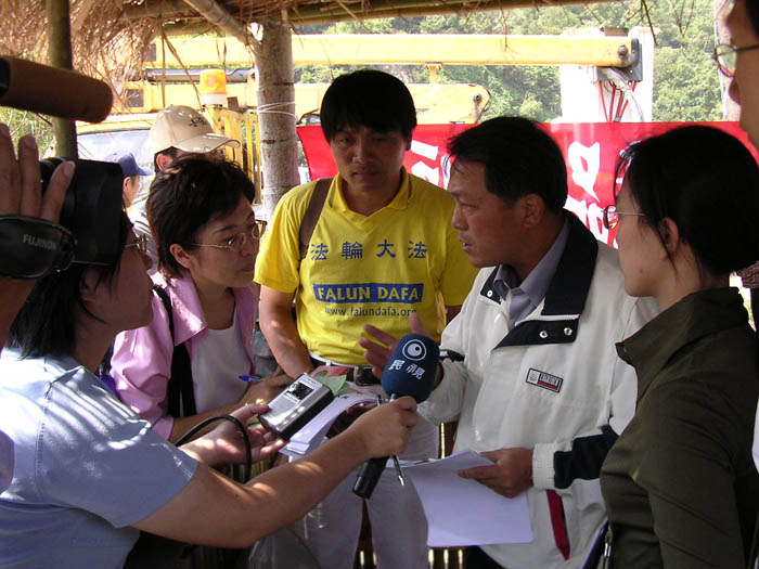 大法弟子并利用参加这次活动的机会,以「紧急救援台湾法轮功学员林晓凯」十四个大字报向在场的民众及与会的政府官员说明台湾法轮功学员林晓凯至大陆旅游遭到上海国安局非法拘留,希望政府单位能尽最大努力协助营救台湾法轮大法学员,透过台湾人民被非法拘留大陆事件,让台湾人民更清楚大陆地区的人权问题。林晓凯的妻子陈淑雅也来到现场,接受各大媒体采访,其他大法弟子在人潮中向世人讲清真象,民众有拍照的、为我们加油的及主动要了解法轮功的,大法弟子在这次活动中所展现的风范让原本警戒的安全人员对我们也竖起拇指,政府官员及警察真正了解到我们大法弟子的善。