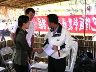 【明慧网2003年10月26日】2003年10月23日屏东县政府在狮子乡举行全国第一届麻里巴狩猎祭活动。活动的开幕式邀请陈水扁总统及吕秀莲副总统共同参与。屏东及高雄地区大法弟子以横幅「屏东法轮功学员欢迎大家莅临屏东」欢迎总统、副总统及所有来宾。