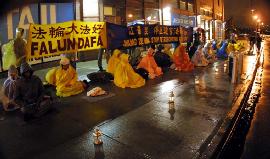 中国吉林监狱有一百多名法轮功学员为了抗议监狱的残酷迫害,展开绝食抗议活动,星期一(27日)晚,近百名法轮功学员于纽约中国领事馆前声援,呼吁中国政府停止镇压法轮功。