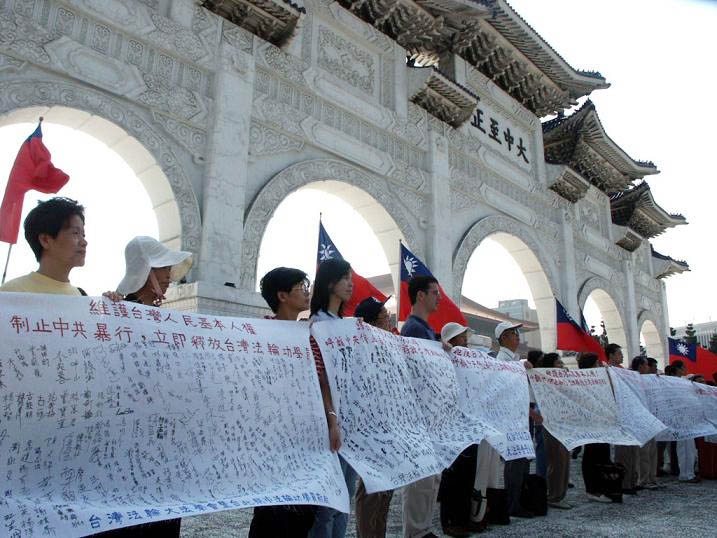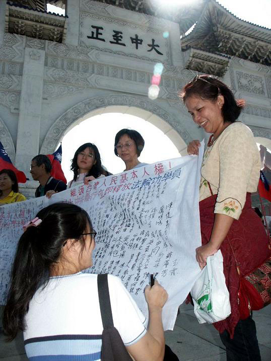 永和市市民代表则表示,维护人基本的生存权益和尊严是每个人的责任,尤其今天台湾的人民受到了迫害,觉得更是要站出来帮忙。法轮功在台湾是一个健康的活动,几乎住家附近大小公园都有人在炼,帮人改善身心状况也没有其他的政治立场,所以愿意站出来,帮忙更多的人,争取人的基本权益和尊严。