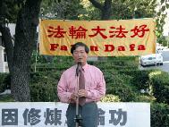 全侨民主和平联盟洛杉矶支盟的理事长李木通先生宣读了支盟的声明,呼吁中国当局立即无条件释放林晓凯和其他被无理拘捕的法轮功成员。李木通先生表示,他希望这件事能让更多的人认识到在集权独裁的社会里,人们的生命安全是得不到基本保障的。他进一步表示,中国大陆不是投资人的天堂。他知道的很多台湾商人就在中国被骗,被敲诈,最后没有分文地回到台湾。