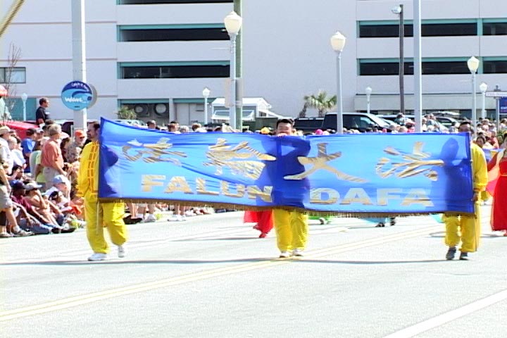 法轮功学员也参加了这次游行活动。我们在几个月前申请参加游行的时候,已到申请截止日的最后一天,当组织者看过以前法轮功学员参加别处游行的相片时,非常惊喜,称赞不已,热情欢迎我们参加。在离游行仅有一个月的时候,我们又临时提出加入花车表演, 组织者听说后,出于对法轮功的了解,非常爽快地同意了我们的要求。