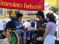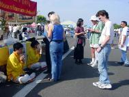 随着正法进程的飞速发展,我们感到迫切了解法轮功的民众越来越多。两边相邻摊位的主人都表示了对大法很感兴趣和对江氏集团迫害法轮功十分不解。有的游客主动前来索取大法简介和真象资料;也有人告诉我们他知道法轮功。在短短的几小时内近千张有关大法信息的传单递到了游人手中。
