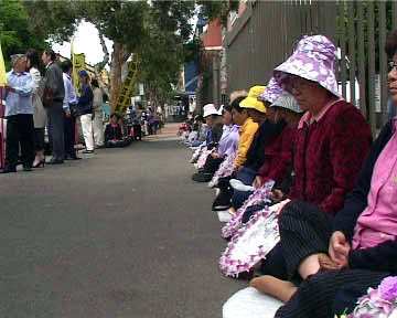 【明慧网2003年11月1日】10月30日,澳洲悉尼的法轮功学员在中领馆前,召开新闻发布会,强烈要求立即释放吉林监狱被非法关押的法轮功学员。法轮功学员代表指出,在澳洲至少有三位澳洲公民的亲人在中国被迫害致死,还有十几位的澳洲公民的亲属正被关在中国的监狱里遭受残酷的迫害,随时都有可能失去生命的危险。参加集会的学员们呼吁更多的正义之士一起来反对这场史无前例的非人性的残酷镇压。