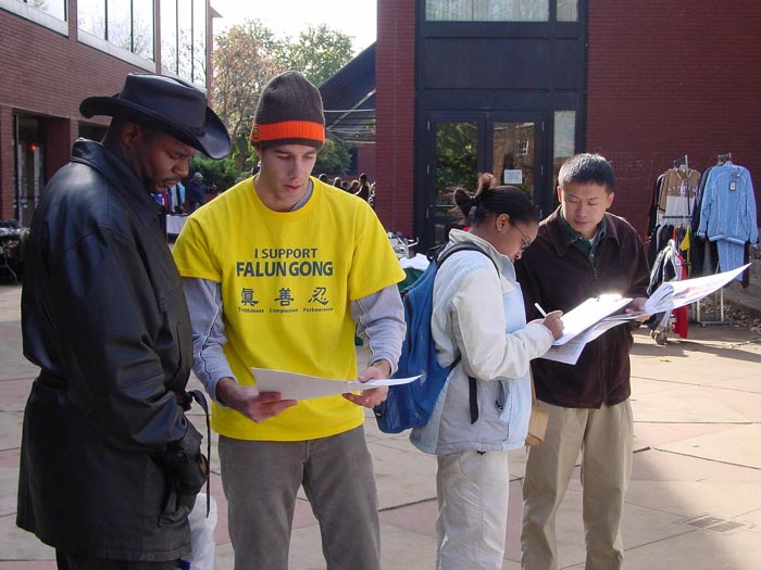 SPELMAN大学是一所以黑人为主的大学,他们尤其记得曾经生活在亚特兰大的民权领袖马丁-路德-金博士以及他的和平非暴力运动。当他们看到遵循“真善忍”、“打不还手、骂不还口”的法轮功学员,在争取自己的最基本人权——信仰自由的过程中,所表现的坚韧不拔,不禁油然而生敬意。他们在给中国国家主席胡锦涛的征签表上,纷纷签下自己的名字。