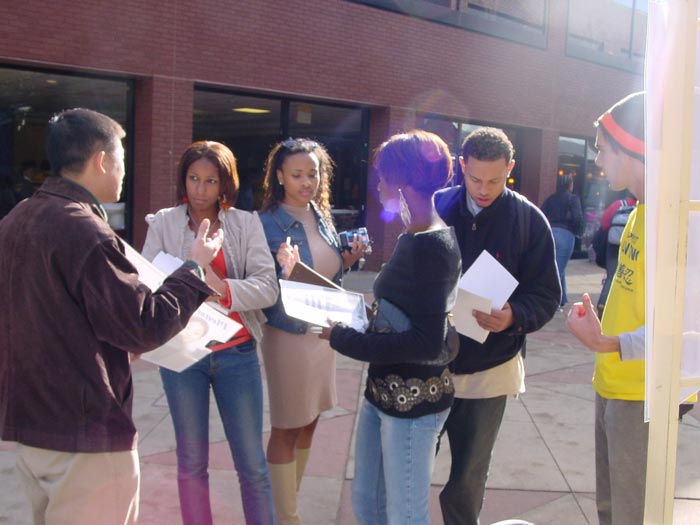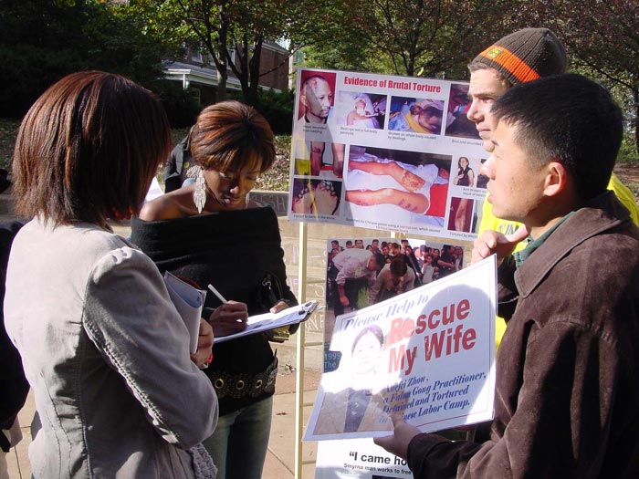 为将这场镇压的邪恶曝光于天下,11月14日,我们来到亚特兰大市中心的SPELMAN大学展开征签活动。