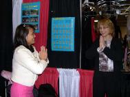 一位母亲路过展位,指指身边的一个小男孩告诉学员:“我在你打坐时,已经拿了资料了,是他要的,他很感兴趣,他要学。”甚至连当天的展览快结束时,还有孩子跑来要求学打坐。大法的美好吸引着天真的孩子们。