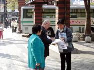 容子丈夫金子笃志也不断拿起话筒直接演讲呼吁,他在演讲中说:我的妻子金子容子现在在中国的劳教所里,仍然被非法关押着。仅仅因为散发了说明法轮功真实情况的传单,就被无理地处以1年6个月的劳动教养。现在已经接近了最后的期限了,