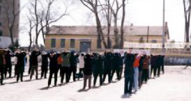 【明慧网2003年11月20日】1999年5月1日,吉林舒兰市水曲柳镇法轮功学员在水曲柳镇车站附近清晨集体炼功。