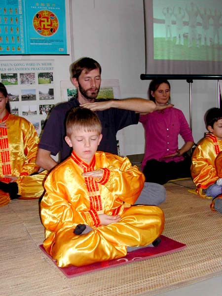 在德国弗里德堡市自然疗法博览会上洪法教功(图)