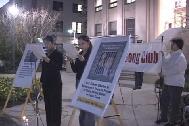 韩裔法轮功学员度望(译音)用英文发表了演讲,表达海外大法弟子们对大陆同修的深切关注,呼吁制止中国对法轮功的迫害。
