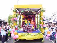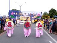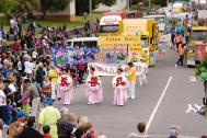 今年花车上的“真善忍”字样,除了中英文外又加上了毛利文,这是一位当地毛利学员的提议,因为更符合毛利人是新西兰原住民的特色。另外今年我们的横幅除了中英文“法轮大法好”,英文“法轮大法学员祝大家圣诞快乐”、“世界需要真善忍”。又多加了“罗陀如阿多种族事务委员会”(ROTORUA ETHNIC COUNCIL)及“容合不同的种族”(UNITY INDIVERSITY)两种横幅。今年圣诞游行与多元文化节活动是在同一天举行,“多种族事务委员会”主席请弟子们帮忙散发多元文化节活动节目单及拿横幅,因为当地学员已以个人名义加入该委员会并定期参加月会。此机构是属于义工组织,与市府关系非常密切,经常举办各项活动。